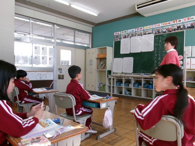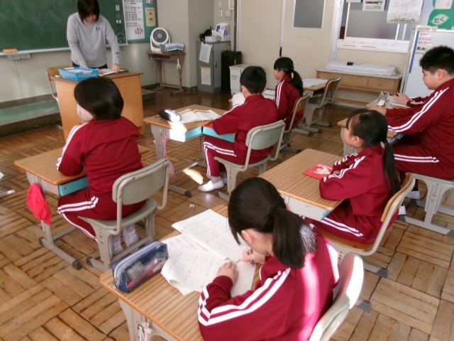 1校時の授業の様子です。1・2年生は道徳、3・4年生、そして5・6年生は国語の授業でした。