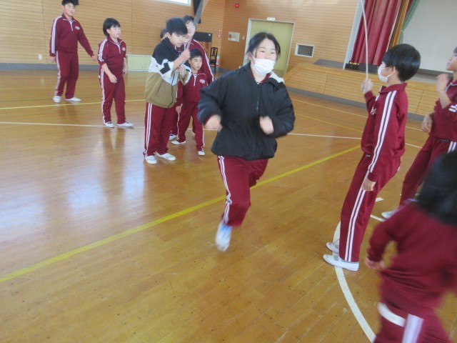 前向きな言葉を掛け合って、跳ぶ順番を相談したり、1年生に跳ぶタイミングを教えたりと、上学年の成長ぶりに感動しました。