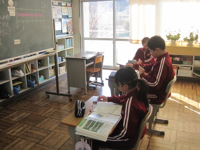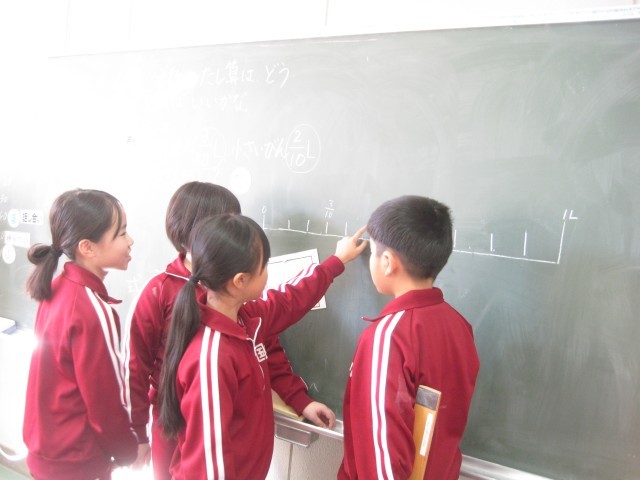 2校時、1・2年生は体育館で体育の授業でした。ウォーミングアップとして運動身体作り取り組んだ後、なわとび運動となりました。3・4年生は、算数の授業でした。友だち同士で考えを出し合いながら問題を解決していました。