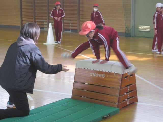 3・4年生は、体育館で跳び箱の学習でした。跳び箱を横にした開脚跳びに取り組み、しっかり脚を開いて跳ぶことができていました。