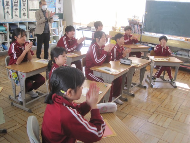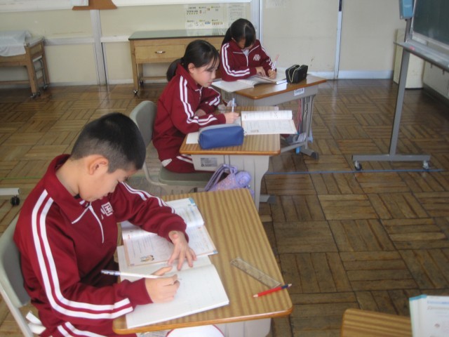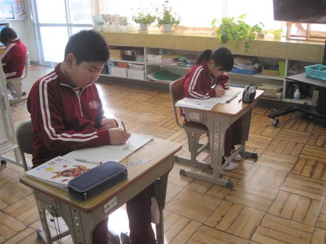3・4年生の2校時目の授業は、算数でした。4年生は、小数のたし算の答えの求め方を式やテープ図で考えていました。3年生は、教科書の練習問に各自でしっかり取り組んでいました。