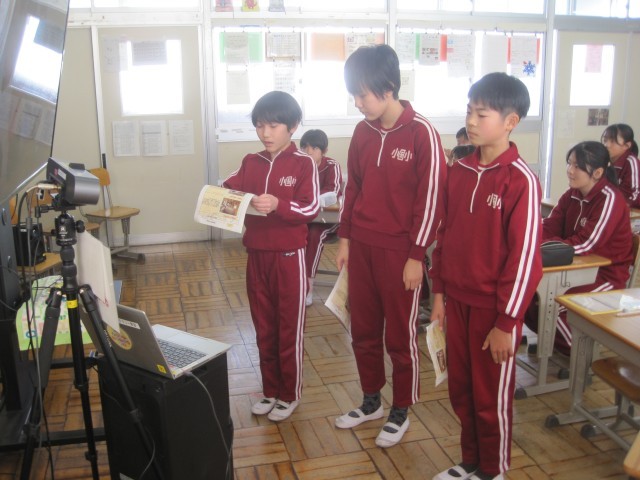 5・6年生は、3~4校時にかけて、総合の授業で情報モラルの学習を行いました。NHKメディアリテラシーの機会を活用し、NHKアナウンサー、そしてリモートで繋がった名古屋市、大阪市、神戸市の小学生と小国小学校の5・6年生とで、情報の「送り手」「受け手」として気を付けなければいけないことなどを交流しながら、これまでの自分の考えを広げたり、深めたりすることができたようです。