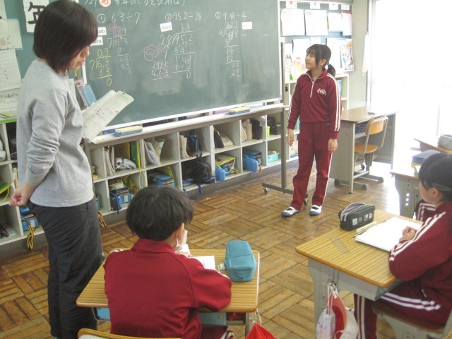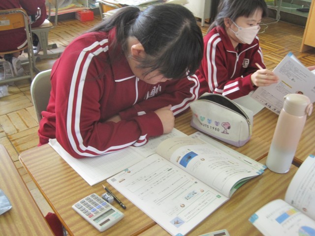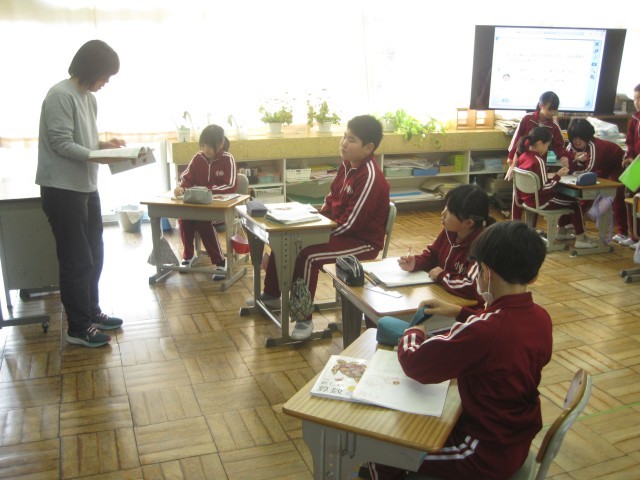 2校時の授業の様子です。1・2年生は、寒い体育館の中で縄跳びの運動を頑張っていました。今日は、1分間で後ろ跳びを何回できたかを記録していたようです。3~6年生は、算数の授業でした。友達と教え合ったり、一人で解決しようと真剣に取り組んだりしながら学習を進めていました。