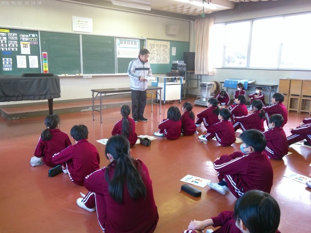 また、来週に全校行事として実施する「スキー体験教室」について、担当の先生から『しおり』をもとに、ねらいや日程、持ち物についてお話しがありました。そして、スキー体験教室に全校生が元気に参加できるように、一人一人が風邪や感染症の予防に努めてほしいというお話しもありました。