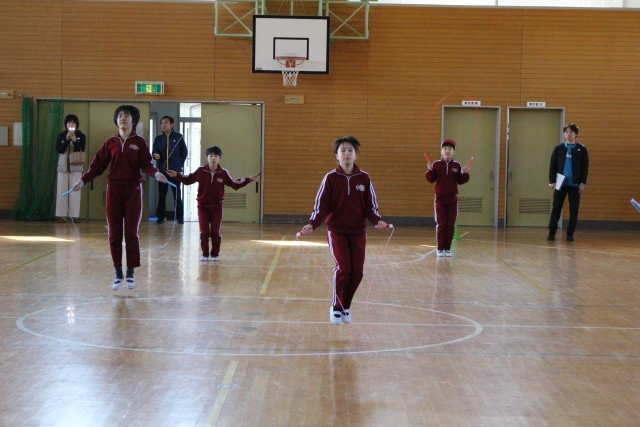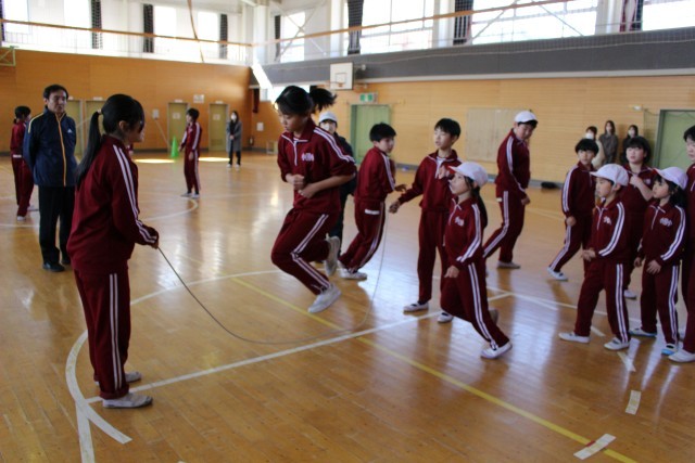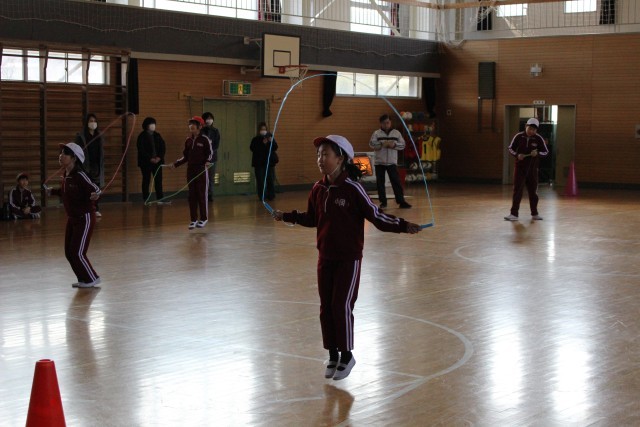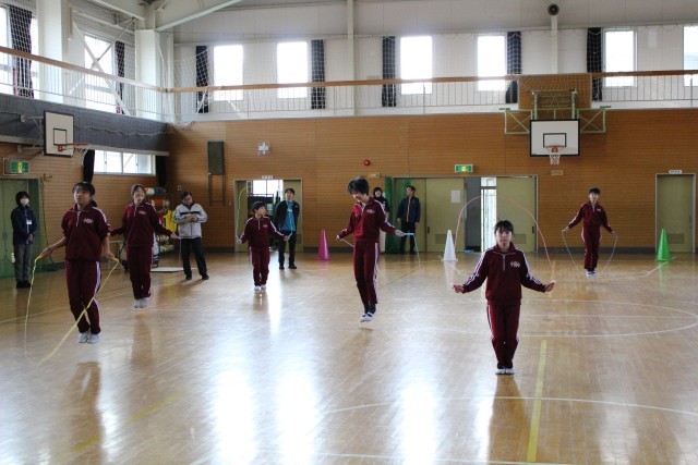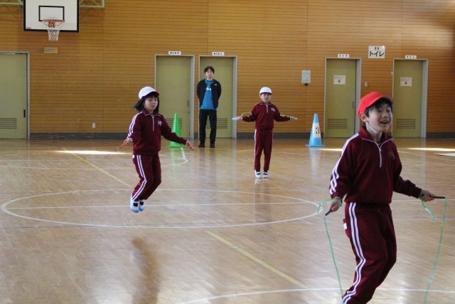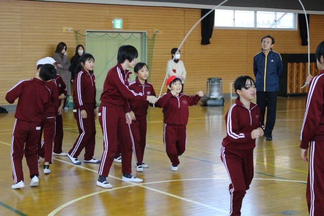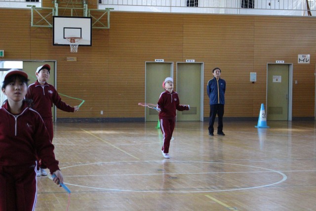 スキー体験教室の翌日ということもあって、実力が十分発揮できるかどうか心配もありましたが、一人一人が自分の目標に向かって頑張っることができた、なわとび記録会でした。