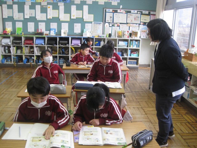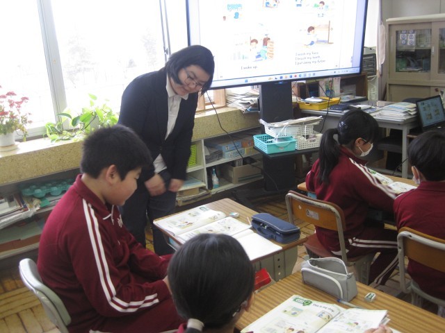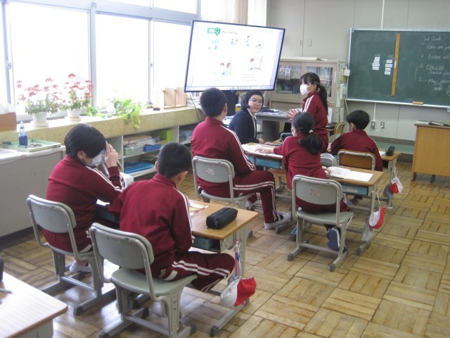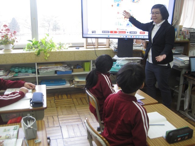 2校時、3・4年教室ではALTの先生と一緒に外国語の学習をしていました。