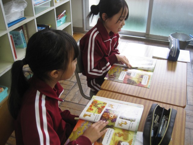 4年生は、家での朝の行動の様子や夜の行動の様子を、英語を使った表現の仕方をALTの先生と一緒に学習していました。3年生も、4年生もALTの先生の発音を真似るのがとても上手でした。