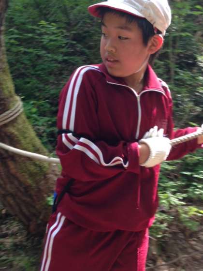 宇宙大作戦で自然を満喫しています。グループで協力し合って、サインを見つけ、課題を解いています。