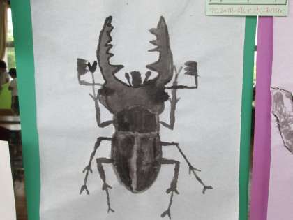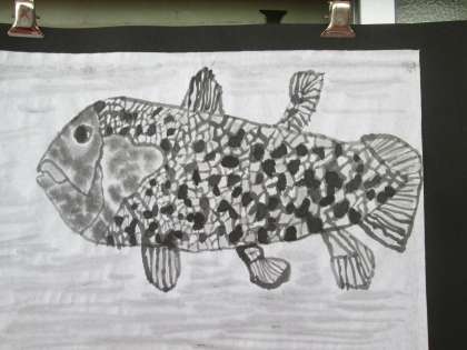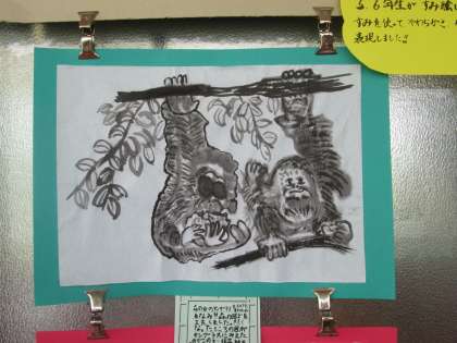 水墨画のように墨をつかって描きました。濃淡の表現が難しいようでしたが上手に完成させました。