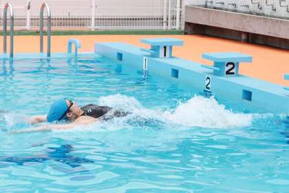 いよいよプールシーズンがやってきました。今年も福大生に模範泳法を見せていただきました。ども子も水泳の目標をもって明日から練習します。