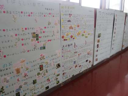 個人研究のまとめが掲示されておりました。自然や植物、昆虫など、詳しく調べたことを簡潔にまとめておりました。