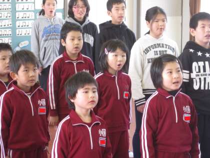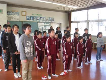 業間の時間を利用して、卒業式で歌う式歌の練習を行いました。最初に発声練習をした後、式歌を歌います。当日は、感謝の気持ちを込めて大きな声で歌いましょう!