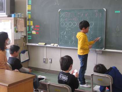 1年生は、足し算の仕方を友達に説明中です。自分では理解していても、説明するのは難しいかな?
