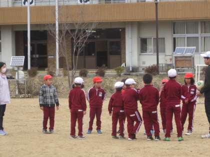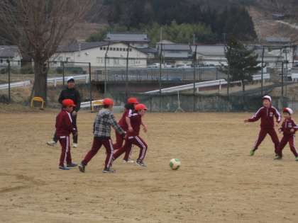 1年生〜4年生は、体育の時間にサッカーをしました。パスなどの基本練習をした後、紅白に分かれてミニゲームを行いました。みんなとても楽しそうです。