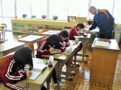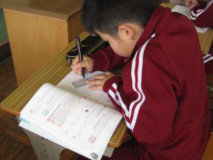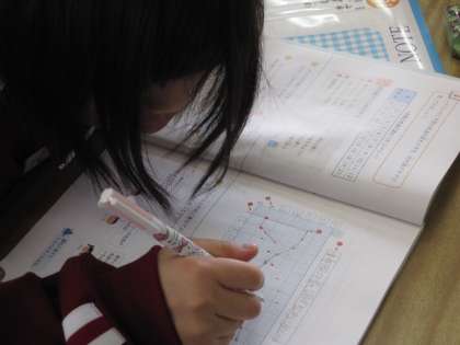 3・4年生は、それぞれ分かれて授業を行っています。今日は、4年生は算数の授業で、折れ線グラフの書き方を勉強中です。