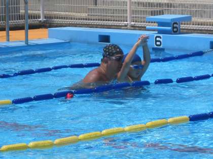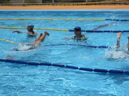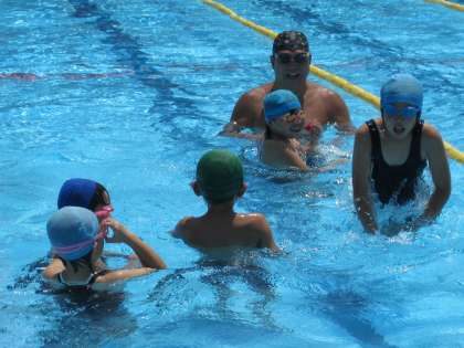 3・4年生は、コースロープを飛び越える練習です。自分の胸の高さにあるコースロープを飛び越えるには、少々勇気が必要です。でも、子どもたちは、大内コーチの指導で飛び越えられるようになりました。全員、本当に楽しそうです。