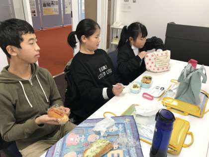 お昼は、持参したお弁当をみんなで仲よく食べています。美味しそうですね。