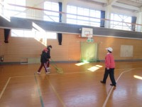 今朝は春だというのに雪景色。冷たい水にも負けず、1・2年生は自分たちで教室のお掃除をしました。