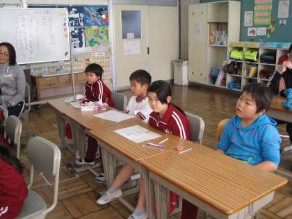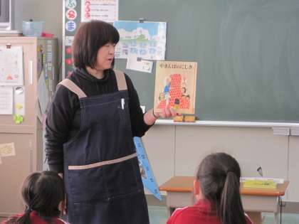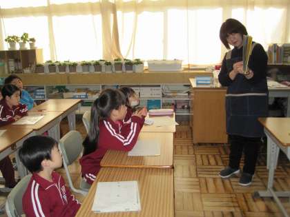 1・2年生のブックトークです。いつも元気な1・2年生も、本の世界にどっぷりと浸かり、どの子供も食い入るように話を聞いていました。本の力は凄いですね。