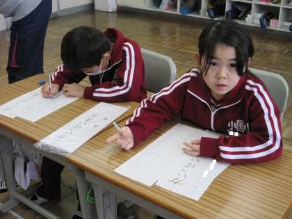 2年生の課題は、「力いっぱい走る」です。漢字も入ってくるので、平仮名とのバランスも必要になってきます。「ここがうまくいかない…」と自分の課題を認識しながら、練習に取り組んでいました。
