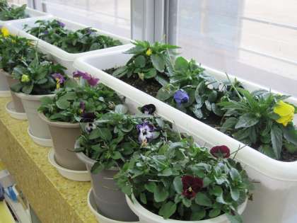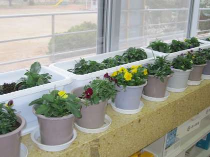 10月、ふれあいの会の皆さんと一緒に植えたビオラやパンジーですが、これからしばらくは各教室でお世話をします。水くれや摘花をしながら、卒業式でのフラワーロードを目標に育てていきます。去年に負けず、美しく育ててほしいですね。