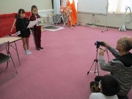 3・4年生代表が今日のお昼の放送で、学習発表会の演技内容の紹介をしました。