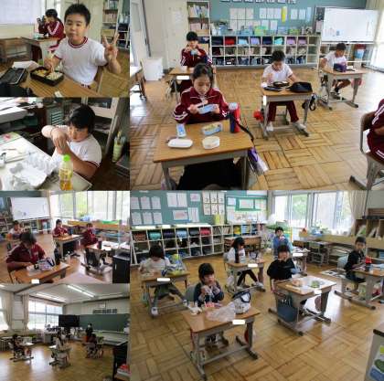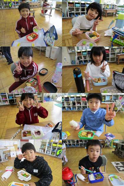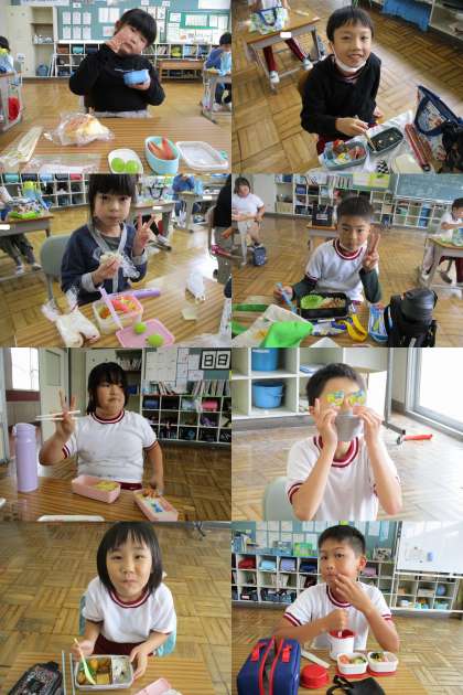 各教室、おうちの方が作ってくださったお弁当を広げて、嬉しそうにほおばっていました。
