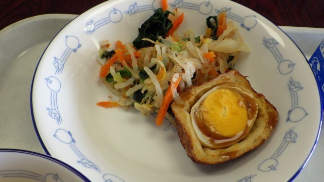 人参ごはん、お月見エッグ、さつま豚汁、おかか和えと、秋を感じさせるメニューがたくさん並び、目で楽しみ、そして、味もおいしくいただきました。秋の味覚に感謝です。また、今週はGAPウィークとして、農家の皆さんによって人にも環境にもやさしい農業を通して作られた食材を一部給食に使用しています。SDGsにもつながるそうです。そのことも意識しながら今週もおいしくいただきましょう。