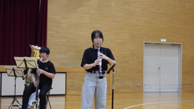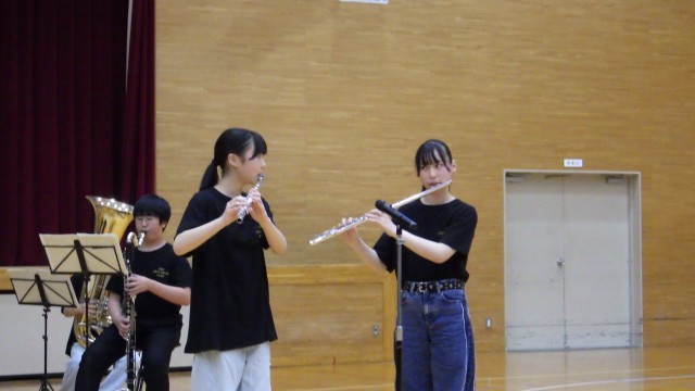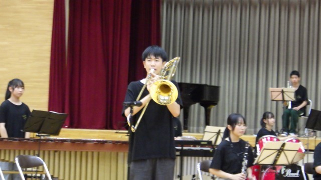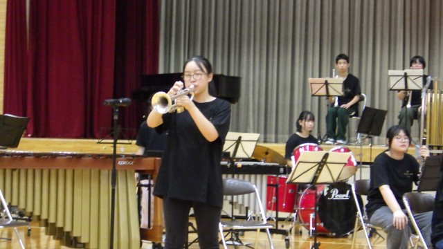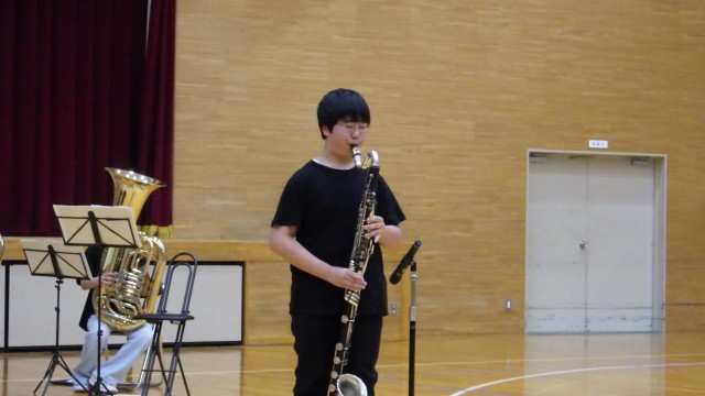 顧問の先生に感謝の花束を贈呈しました。その後、3年生がパートごとにソロを演奏したり、アンコールに応えたりと、中身の濃い、それでいてあっという間の90分間でした。