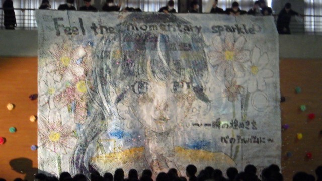 待ちに待った桃花祭! まず全校生徒で作ったビッグアートが披露されました。大きな歓声が上がりました。