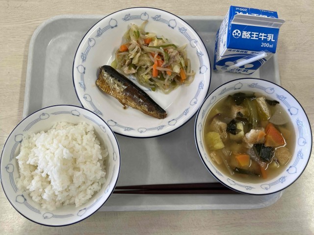 いわしは骨までやわらかく調理してあります。甘辛のかんろ煮でしっかり味付けしてあって、ごはんが進みます。おみそ汁と野菜炒めで、たっぷり野菜を食べて、これまた大満足。本日も、ごちそうさまでした。