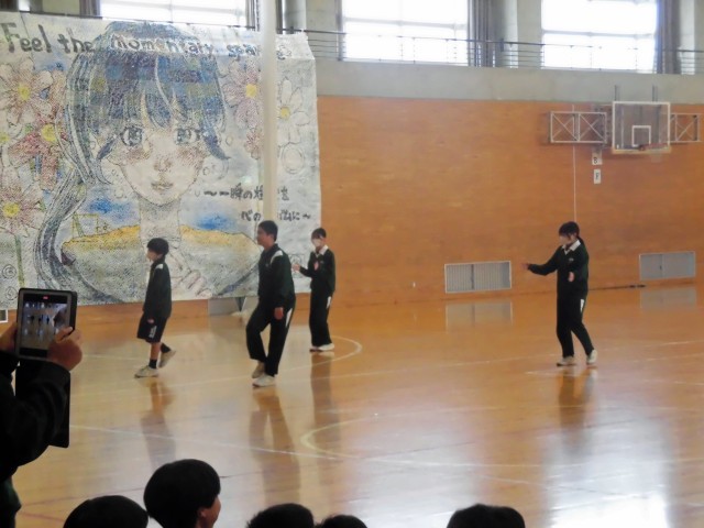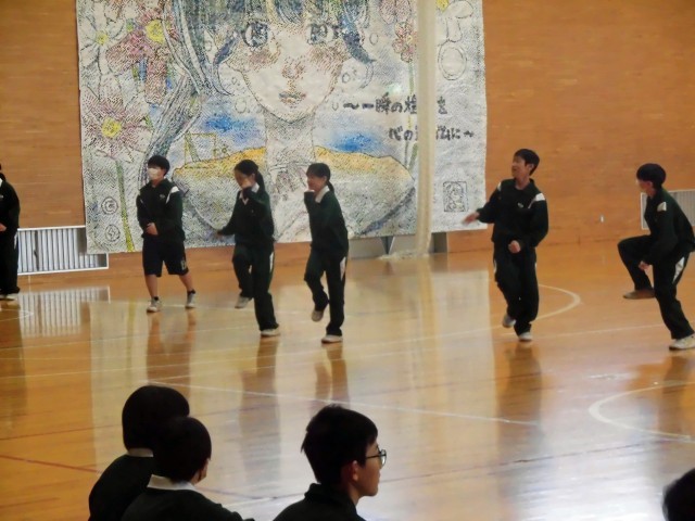 1年生のダンス発表会の様子です。発表も見学もとてもよくできました。友達の意外な一面を発見できたでしょうか?