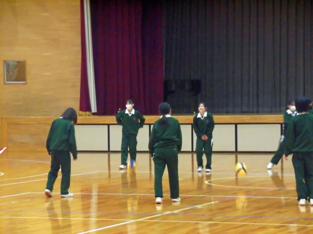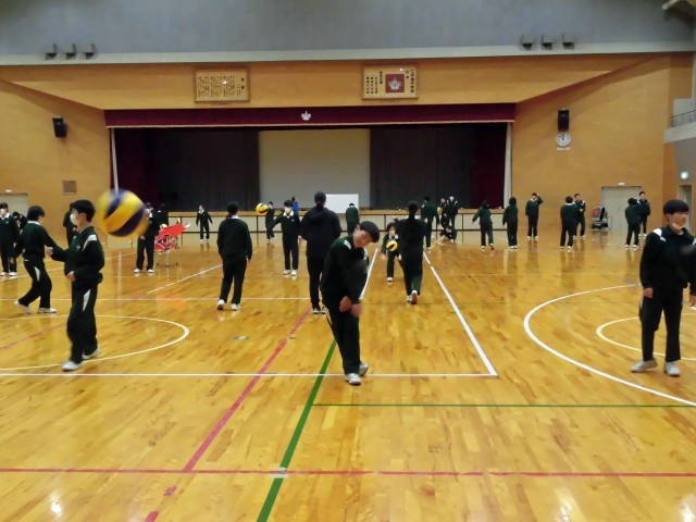 1年生のバレーボールの授業より。突き指などに気をつけて取り組んでほしいと思います。