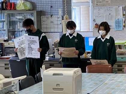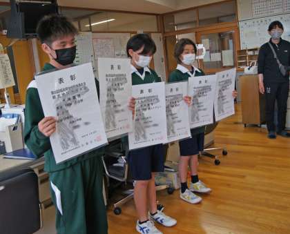 特設水泳部員の4名は、さきほど帰校し、職員室で結果報告をしました。