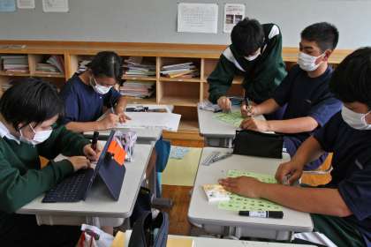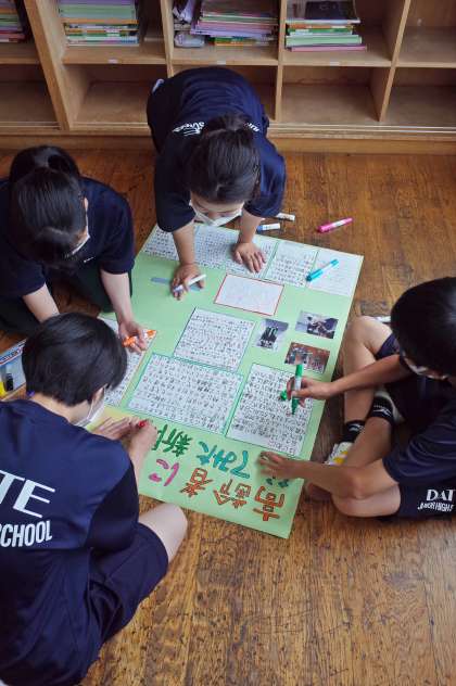 体験学習で学んだことを班ごとにまとめています。