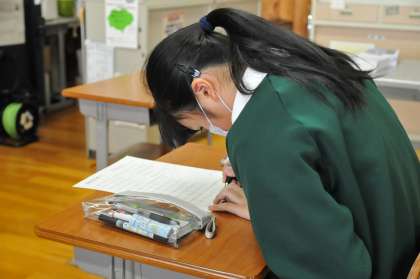 本日の朝の時間に、全学年で計算大会が行われました。必死に頑張る生徒たちの姿が見られました。