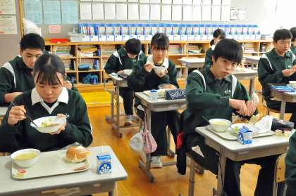 ハンバーガーの日 福大ボランティアの先生も一緒にランチタイム。