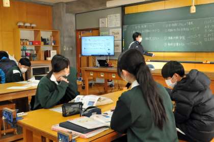 A 例:はい。父、母、姉、弟、わたしの5人家族です。とてもあかるい家族です。
