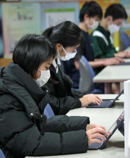明日は、登校時、雪が降り、強風、気温は−6度の予報です。