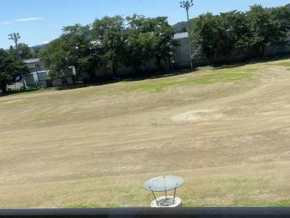 25回目のグランド整備。先日の降り続く雨の影響で、濃厚な緑色。