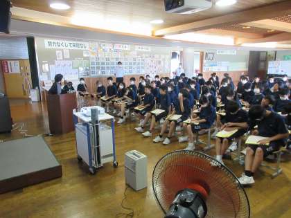 7月3日(月)学校栄養教諭の佐藤香代子先生に「栄養バランスのよい弁当作り」についてお話をいただきました。