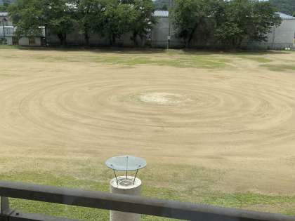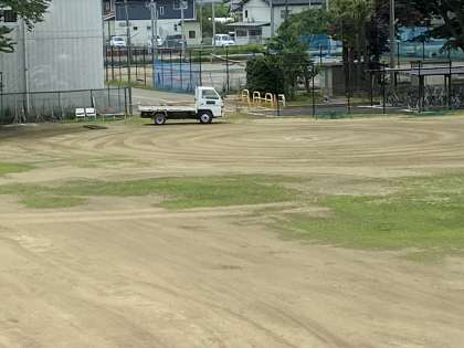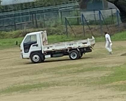 ちょっと霧雨が降ってきた頃からのグランド整備です。