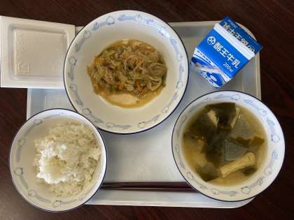 給食メニューは、納豆 麦ごはん 油揚げと大根のみそ汁 野菜のピリ辛みそ炒め 牛乳。