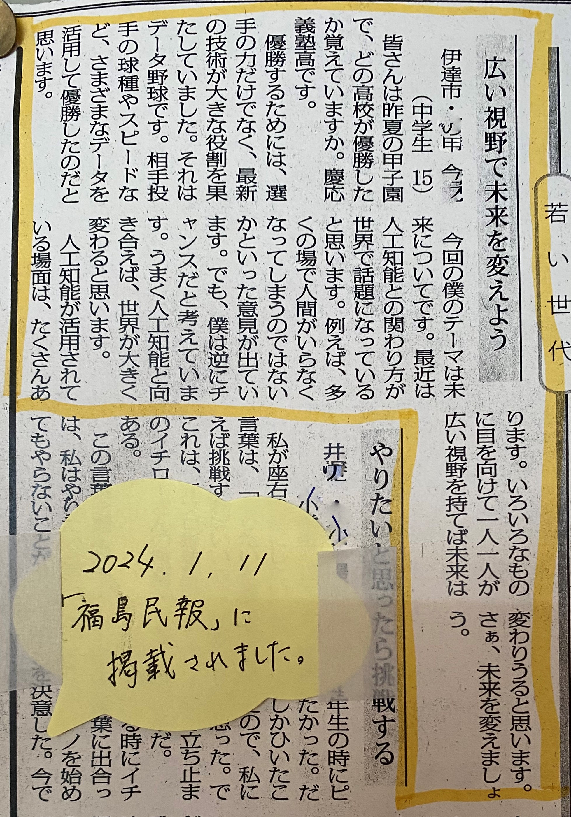 3年生の主張 2024 広い視野で未来を変えよう