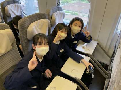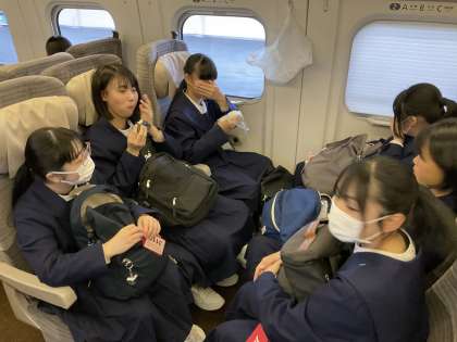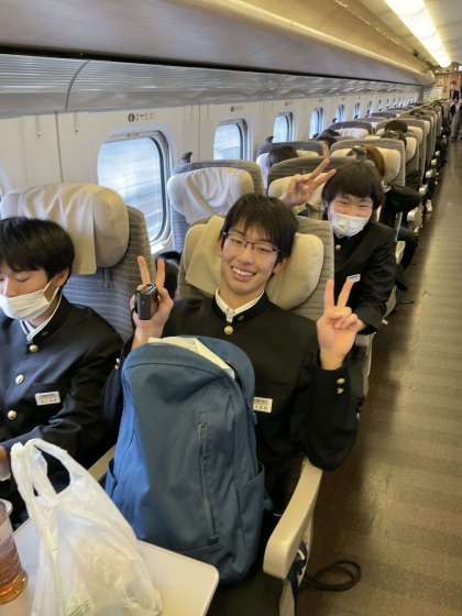修学旅行 東北新幹線で移動中
