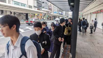 清水寺行きのバスを待っています。8:12