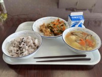 しばらくぶりの給食は、やっぱりかなりいける味。ごちそうさまでした。