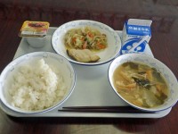 麦ごはんに納豆と肉じゃがは最強の組み合わせです。納豆のネバネバ、肉じゃがのホクホク、ショウガ和えのシャキシャキ感でおいしくいただきました。最後はさくらんぼゼリーの爽やかな風味でごちそうさまでした。やっぱり給食はいいな~。