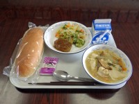 ほどよくスパイスのきいたキーマカレーを、もっちりふっくらのナンと一緒にペロリ。ポテトもついて大満足。さらに、7日(月)は給食がありませんので、一足早く七夕ゼリーで、七夕気分も味わいました。ごちそうさまでした。