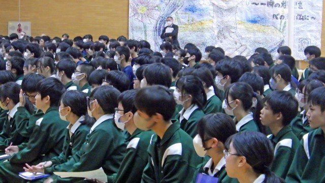 3年生は、代表生徒による「少年の主張」と、修学旅行の発表がありました。LGBTについての堂々とした主張と、クイズを交えながら楽しく修学旅行の発表がなされました。